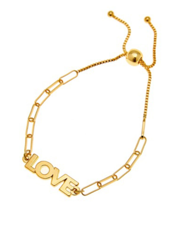 Add a custom word plate charm to this adjustable paper clip chain bracelet.